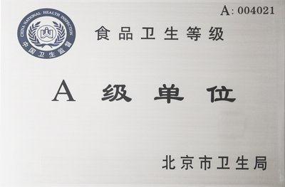 北京百靈鳥餐飲管理有限公司榮譽資質證書展示